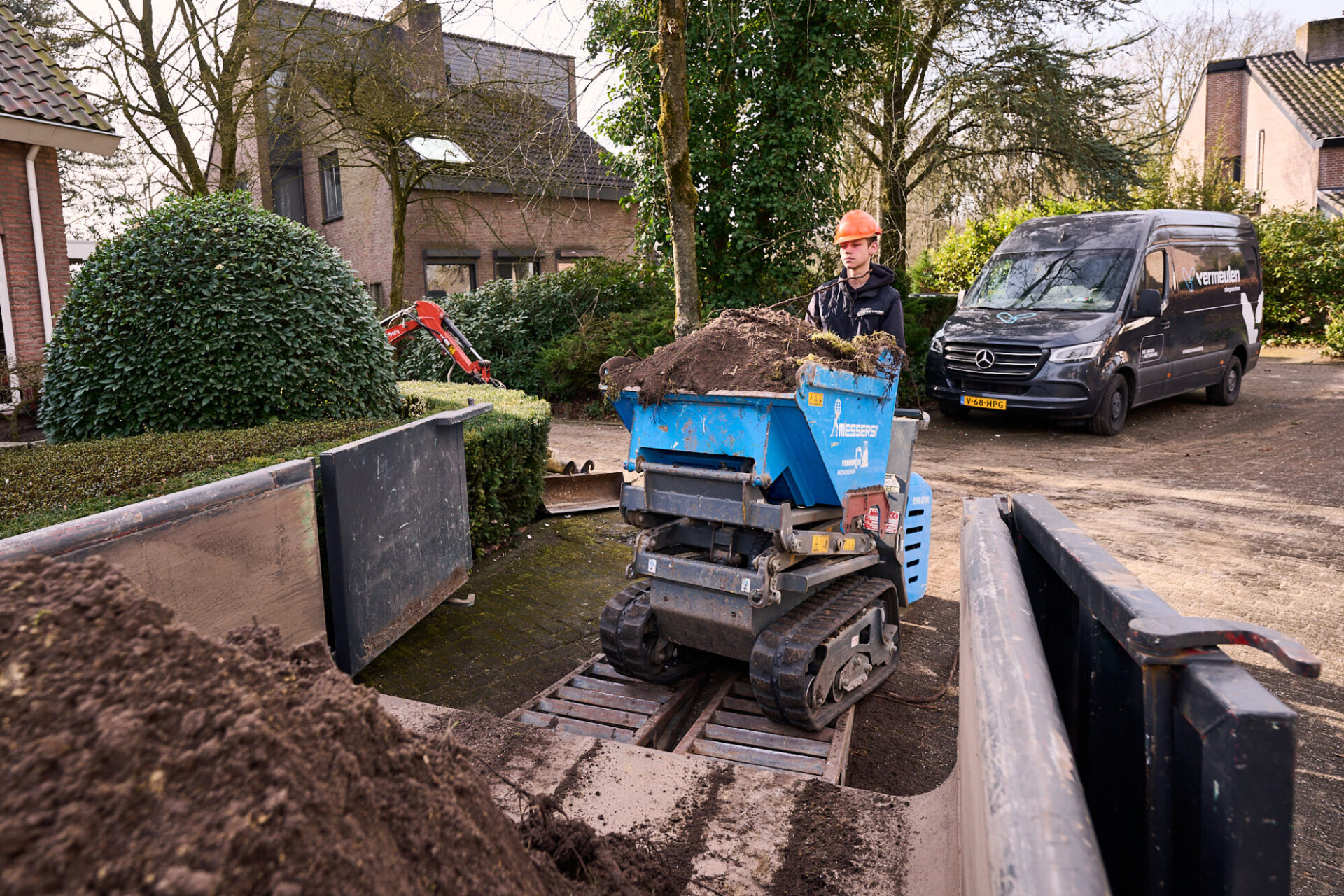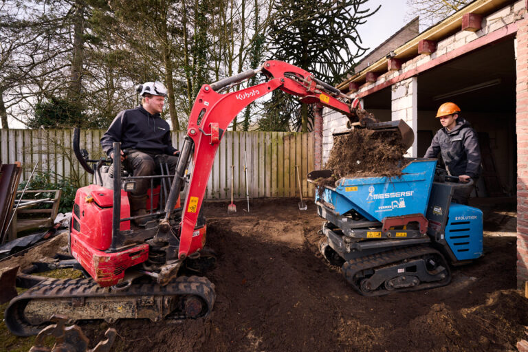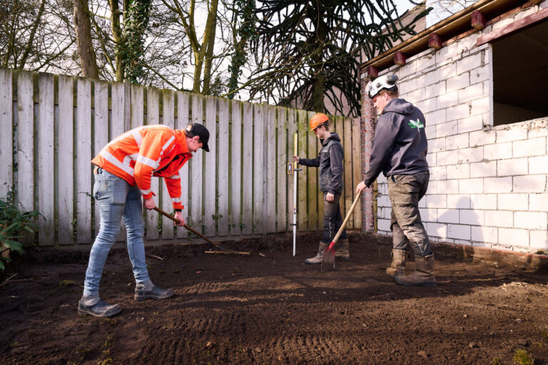 Na het verwijderen van de betonvloer hebben we de ondergrond zorgvuldig uitgegraven tot de juiste hoogte. Dit was een cruciale stap, zodat Bouwservice Meulenbroek de vloer opnieuw kon isoleren en de energie-efficiëntie van het gebouw kon verbeteren. Daarnaast hebben we het grondwerk voor twee aanbouwen volledig uitgegraven en op hoogte afgewerkt, waardoor de bouwplannen direct van start konden gaan.